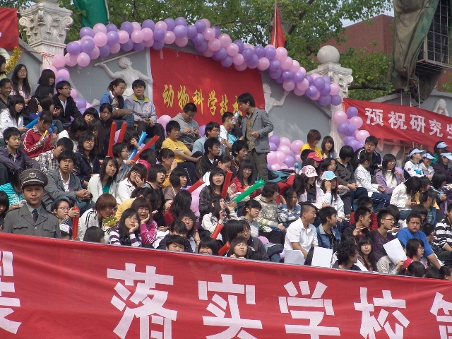 看台上,呐喊声,锣鼓声,声声震天!动科系的同学们用同样的激情为运动健儿们助威,用同样的热情加入到紧张的比赛中。