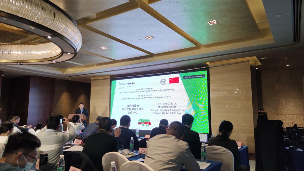 12月3日下午,由全国畜牧总站主办、北京农学院承办的“中德畜牧业合作项目牛业育种项目研讨会”胜利召开,会议由全国畜牧总站畜禽种业指导处处长刘丑生主持。全国畜牧总站党委书记时建忠、德国联邦食品与农业部国际项目合作处、双边关系负责人霍夫斯达特先生、农业农村部对外经济合作中心处长唐治韵致辞。
