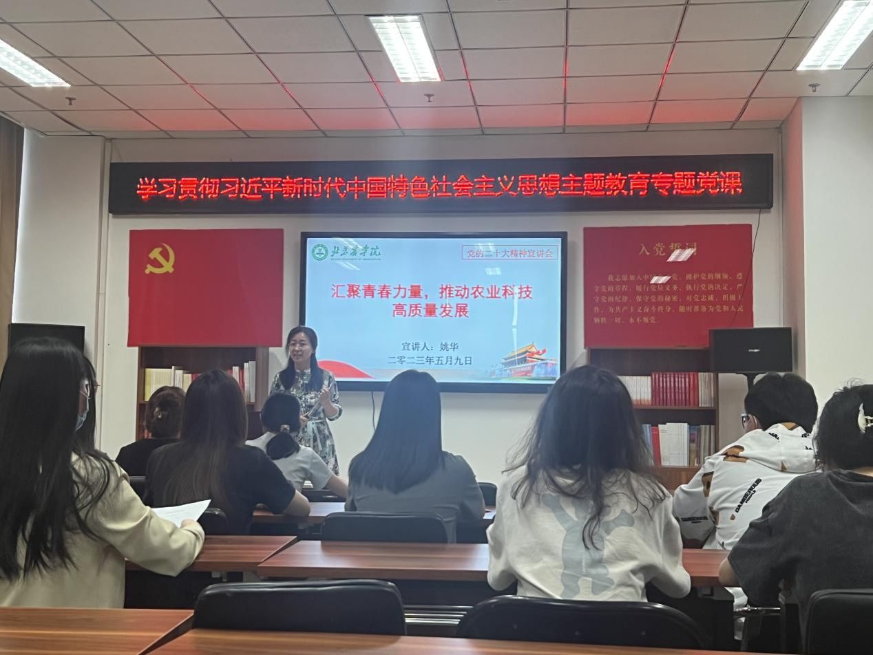 教学工作副院长姚华以“汇聚青春力量 推动农业科技高质量发展”为主题,分享了学习党的二十大精神体会,结合学习习近平总书记给中国农业大学科技小院同学们的回信精神,鼓励青年党员要有农业科技高质量发展的责任与担当,在服务行业发展的青春战线上的奋进与成长。