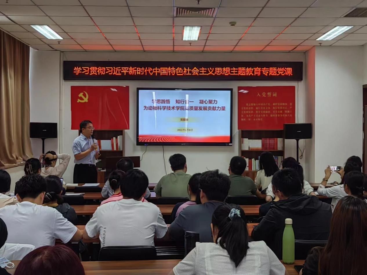 党委副书记、院长蒋林树以“以硬实力铸就动科辉煌”为主题,从“学习感悟”和“勇毅前行”两部分讲授主题党课。蒋院长带领党员同志们重温了历年习近平总书记新年贺词的内容,共同学习了党的二十大报告精神和主题教育要求,并结合学院实际工作,为香港六合彩开奖记录