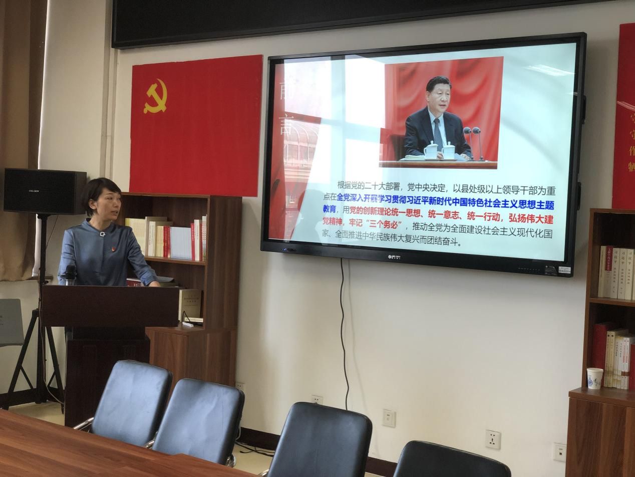 科研工作副院长董虹以“深入学习贯彻习近平新时代中国特色社会主义思想 厚植科研工作精神 提升科研业务水平”为主题,结合学校学科评估、博士点申报等中心工作,引导师生党员要落实主题教育工作任务,突出问题导向,查不足、找差距、明方向,紧紧锚定目标任务,着力解决突出问题,凝心聚力,共创动科辉煌。