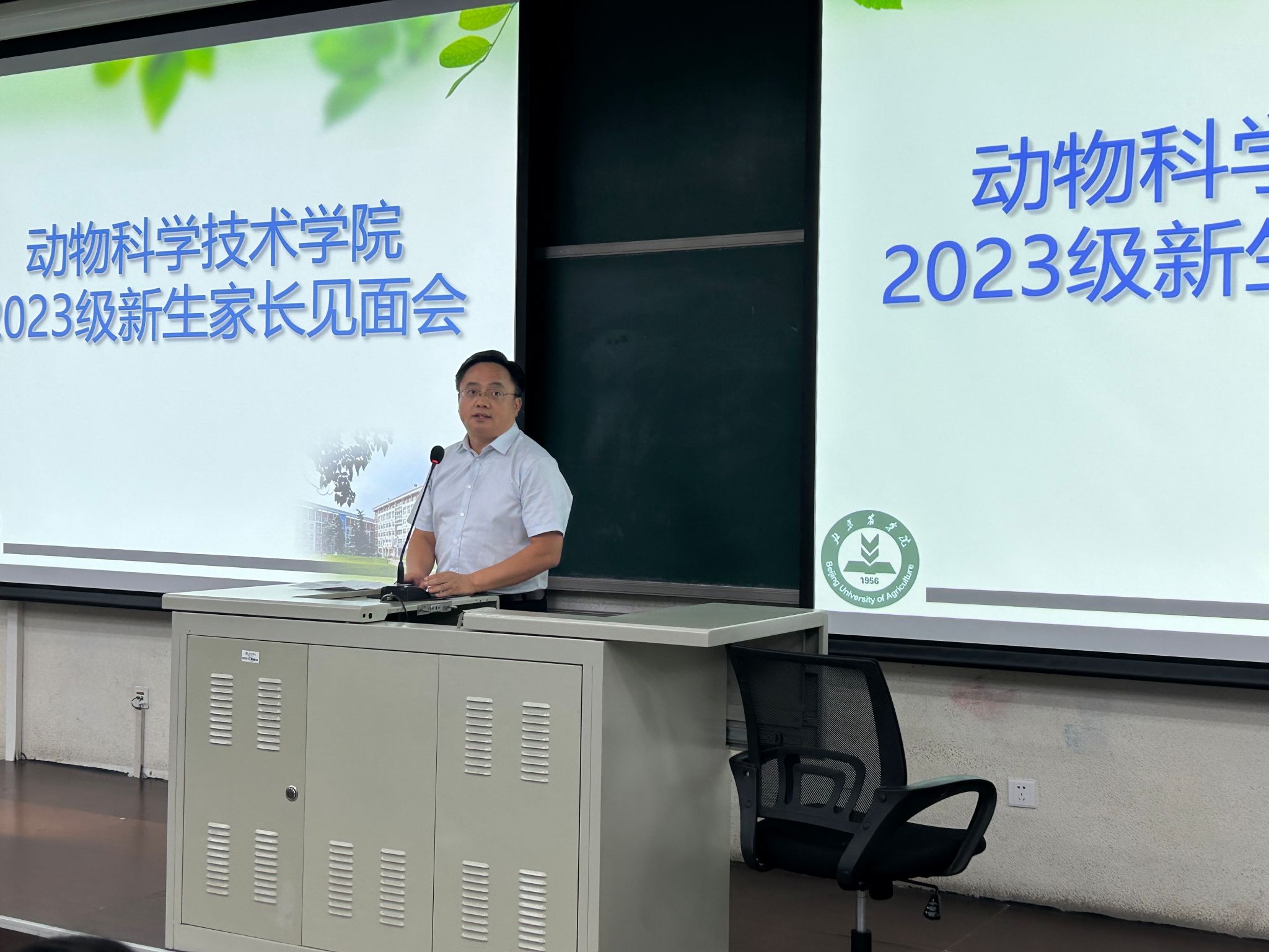 新生到校的第二天,学院在教B303召开了迎新大会,会上,首先由学院党委副书记、院长蒋林树老师向新生们介绍了学院的基本情况和学科专业前景,号召同学们认真学习,为动科专业提供优秀的人才。新生代表、2021级动医3班王世兴同学说出了未来四年的愿景,长路漫漫亦灿灿,希望大家不断拼搏,实现人生目标。新生代表、2023级动医1班邢翰霖同学就如何树立目标,计划好大学的每一天,为成为国家需要的人才而不懈努力做了发言。动物科学专业2班班主任周俊言老师代表全体教师发言,希望同学们学有所成、学有所就。最后,学院党委书记党登峰老师总结讲话,希望同学们踏实学习,在就业压力日趋紧张的时代练就过人本领,在大学里完成差异化发展。