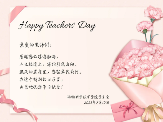 岁月像一条河,随时间静静地流过。动科学生们的每一步成长都凝聚着您辛勤的汗水,烙印下属于您的印痕,每一个角落都留有您清晰的足迹,在这里,让我们为最尊敬最可爱的您们,献上崇高的敬意和真诚的感激。