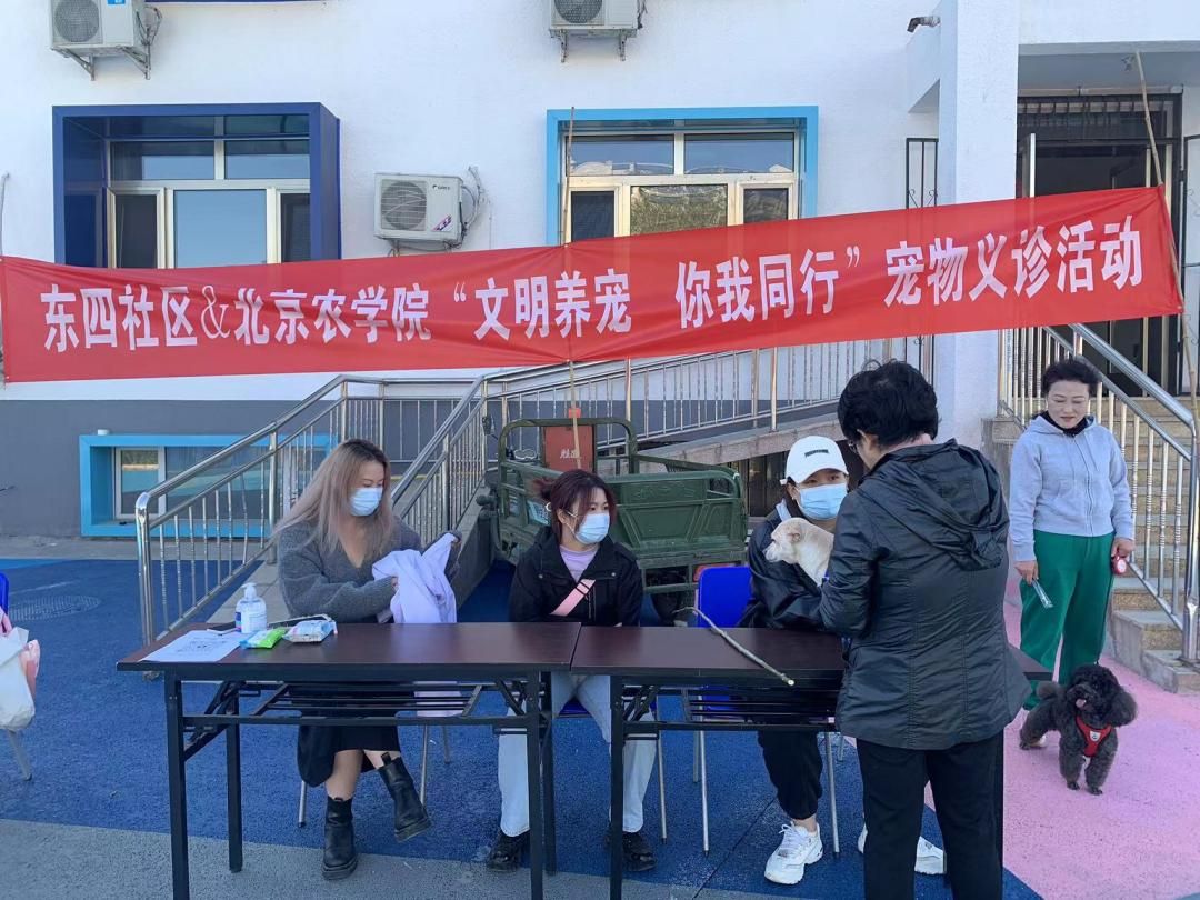 宠物临床医师研究生专班的三名研究生参加了北京东四社区与北京农学院一起举办的“文明养宠 你我同行”公益义诊活动。