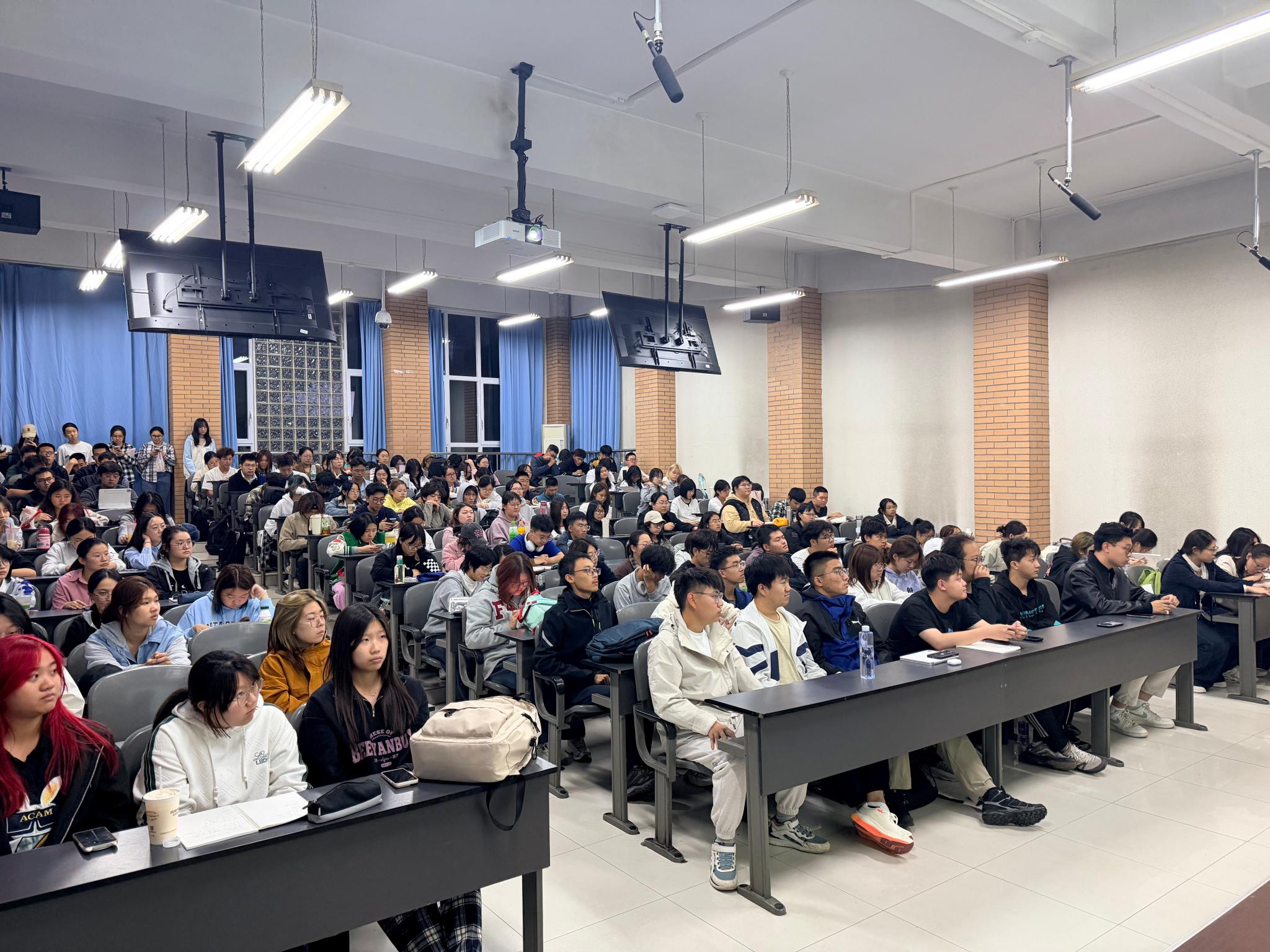 党委副书记、学生工作副院长苑婧娴主持会议。2025级本科生辅导员褚思南、全体学生参加。
