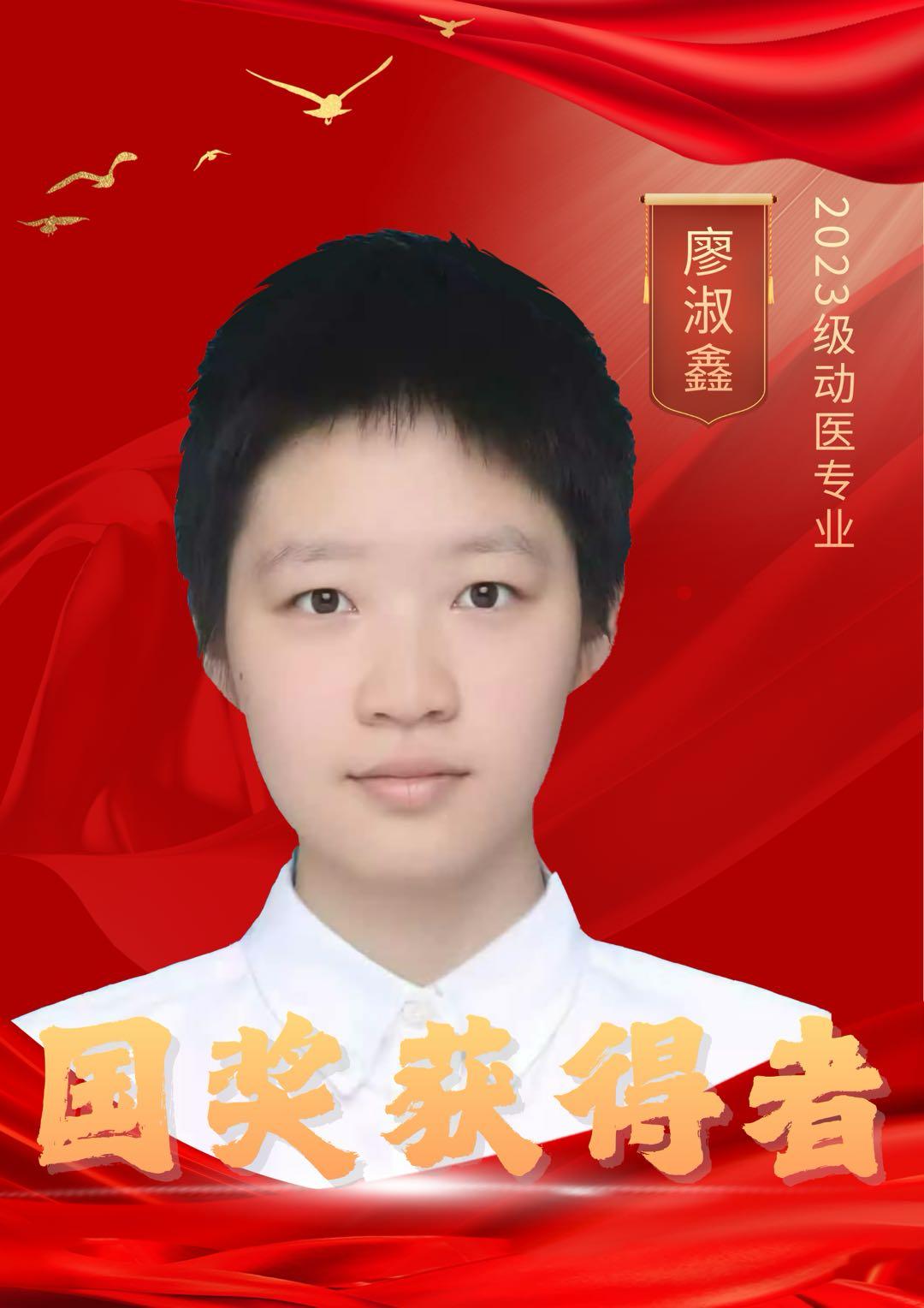 廖淑鑫,2023级动医专业,共青团员,曾任院青协项目部部员,获得三创赛校赛特等奖(队长)、农林杯校赛二等奖(挑战杯)、24年11月外研社杯市赛三等奖。