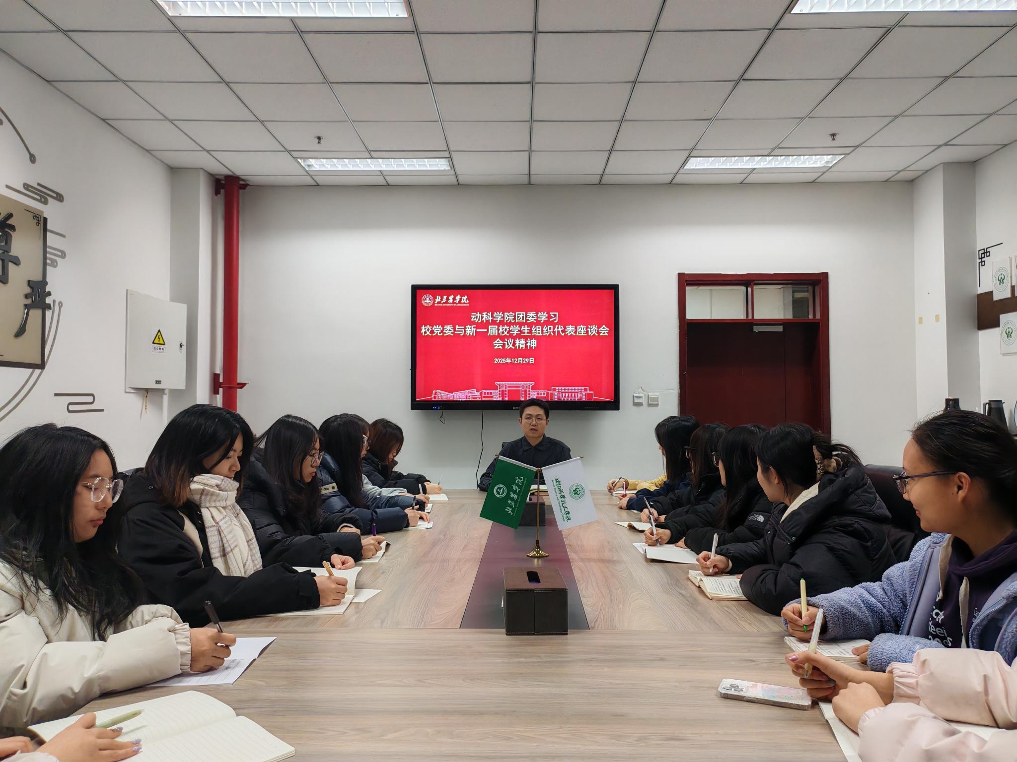 通过对校党委与新一届学生组织代表座谈会内容的学习,我们作为学院学生干部也深受鼓舞。我们更加明确了引领青年、服务青年的根本职责。未来,学院青协将结合动物科学专业特色,搭建更优质的志愿服务平台,引导动科学子将个人发展融入国家农业现代化建设中,为强国建设贡献青春力量。