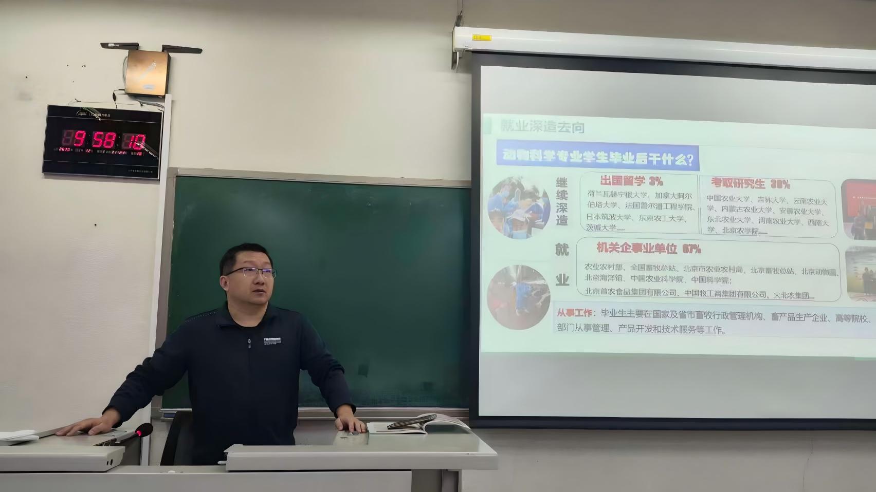 2027届毕业生的考研积极性,明确2026年考研的备考目标,科学规划学业发展方向,2025年1月12日,辅导员彭先勖与23级动科专业学生在教B-105召开了2027届动科毕业生考研动员会。