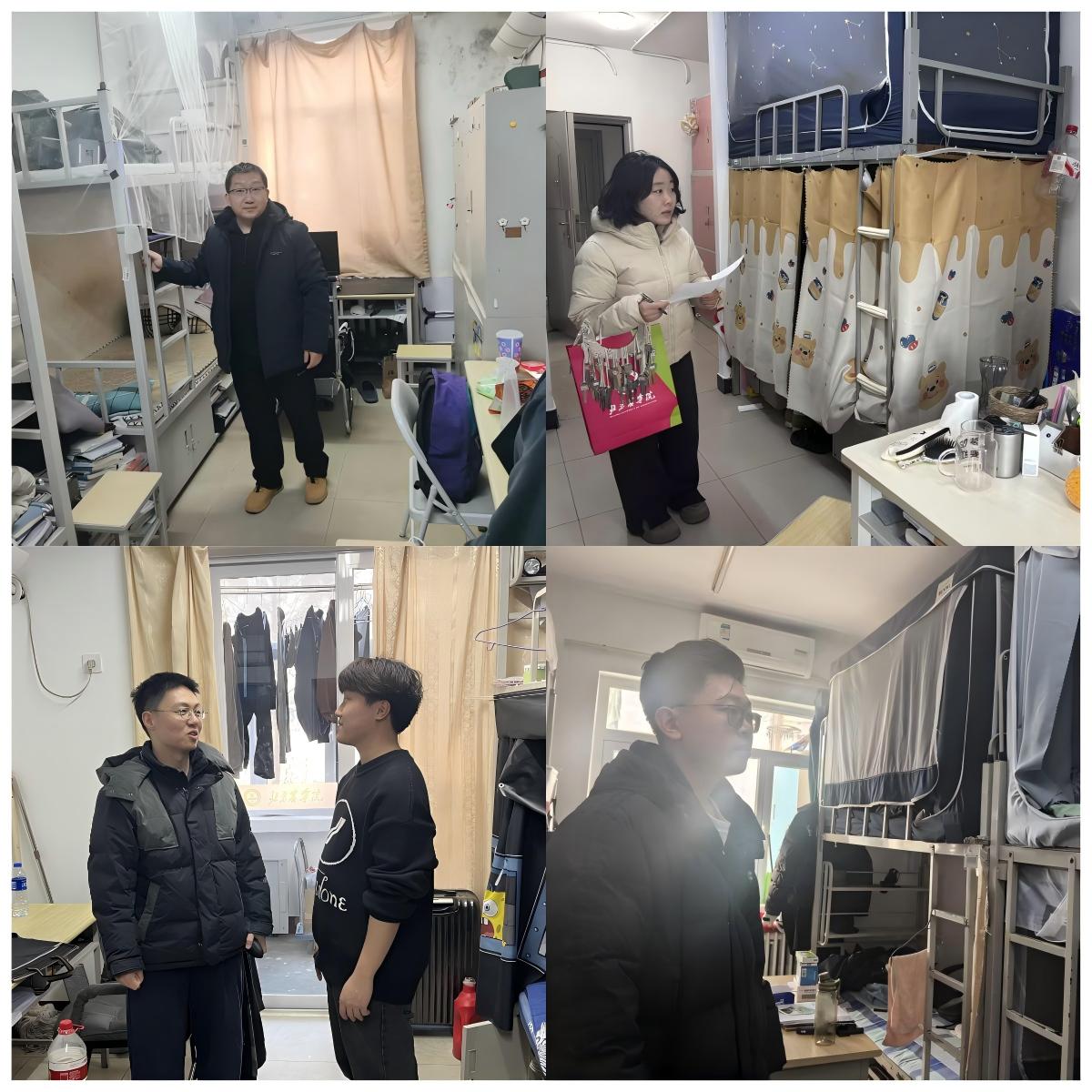 近期组织全体辅导员深入学生宿舍,开展寒假前安全专项检查。此次检查由学院党委副书记苑婧娴带队,辅导员彭先勖、董晨阳、凡震、褚思南参加,旨在全面排查安全隐患,确保学生平安离校、欢度假期。