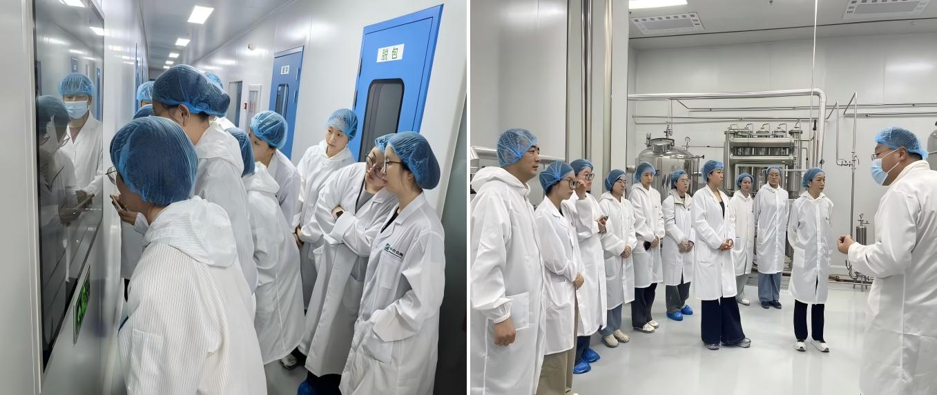 活动第一站,中兽医药专班师生们来到北京中农劲腾生物技术股份有限公司。在企业技术人员引导下,大家严格按照兽药生产规范,依次参观了中药材原料库、提取车间、制剂车间、质量检测中心等核心区域,全程观摩中兽药从原料筛选、炮制加工、提取浓缩、制剂成型到成品检验、包装出厂的完整制药流程。