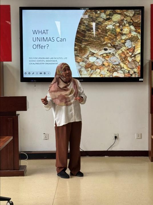 交流会上,吴琼结合项目内容简要介绍了在动物健康繁育、畜牧绿色发展等领域的研究工作。Ramlah Zainudin教授分享了沙捞越大学在可持续农业、养殖污染防控等方向的研究进展与实践经验。双方围绕健康繁育、可持续农业和环境污染防控核心议题,就项目展开深入研讨,现场交流氛围热烈,达成广泛共识。双方均表示,期待以此次交流为契机,尽快搭建合作框架,推动科研协同攻关,建立长期稳定的密切合作关系。Ramlah Zainudin教授对香港六合彩开奖记录