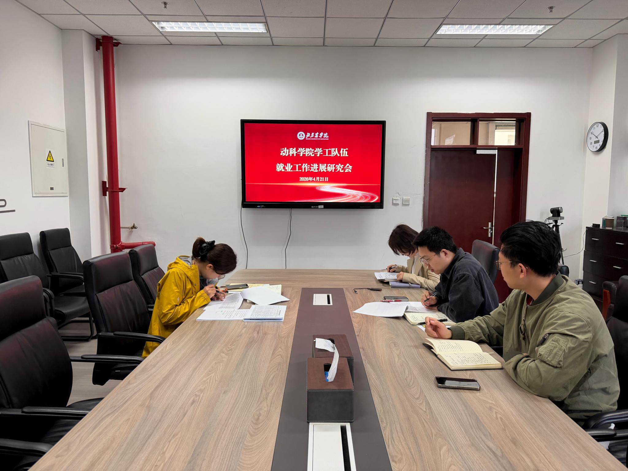 学生更加充分、更高质量就业,2026年4月22日,动科学工队伍召开2026届毕业生就业工作专题研讨会,深度研究就业进展。学院党委副书记、副院长苑婧娴主持,辅导员董晨阳、凡震、褚思南参会。